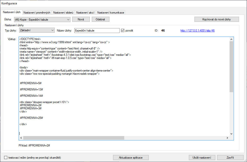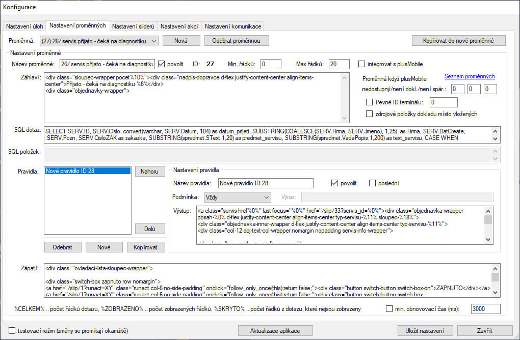 - zobrazení ID úloh, pravidel a proměnných