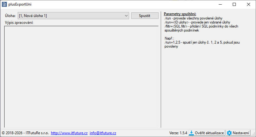 Aplikace umožňuje i spouštění z příkazové řádky. Je tak možné veškeré úlohy spouštět v nastavené časy dávkově na pozadí. Vše se tedy jednou nastaví a dále pak úlohy probíhají zcela automaticky bez zásahu uživatele.
