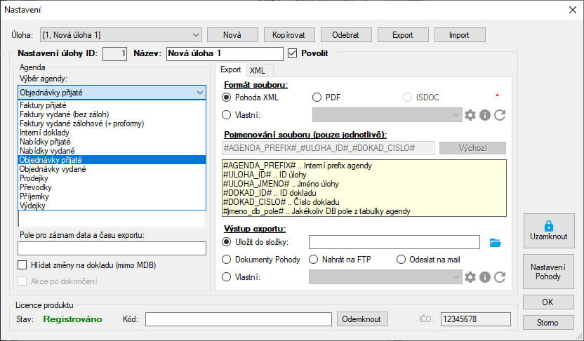 - automaticky exportovat doklady z příslušných agend v Pohodě,