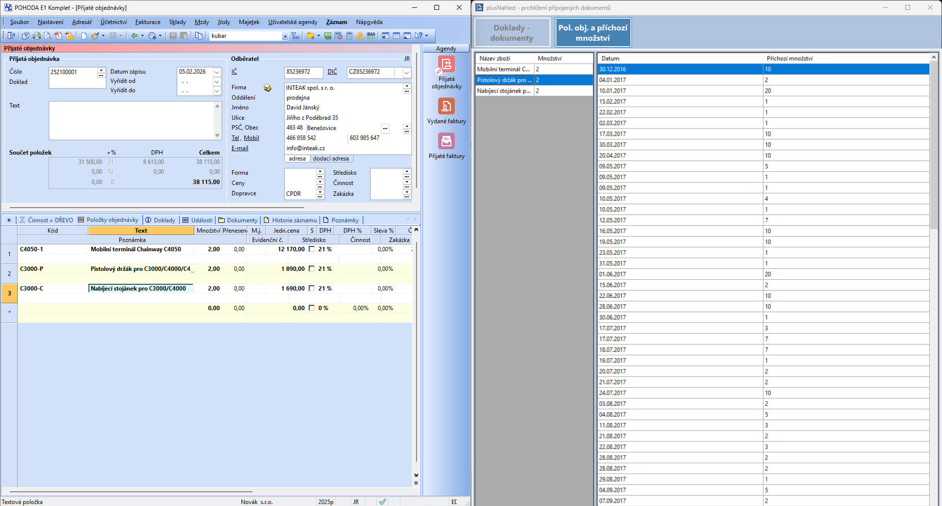 - zobrazení libovolného seznamu souvisejícího s označeným dokladem v Pohodě