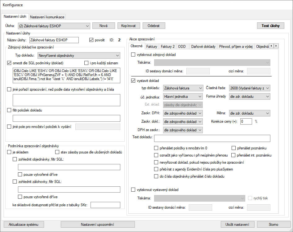 - úprava - možnost definice zálohovek k uplatnění pomocí SQL výrazu (např. textové zálohovky k objednávkám)