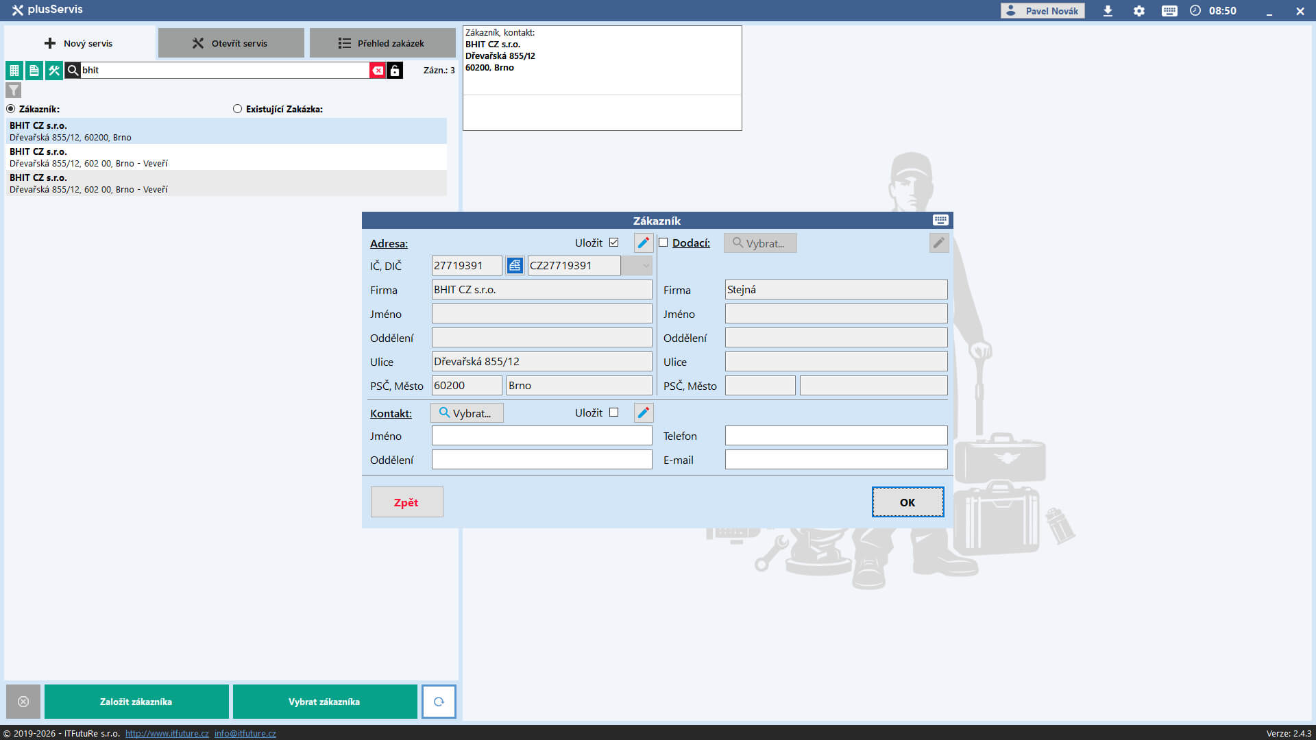 - oprava načítání dodací adresy založených servisů