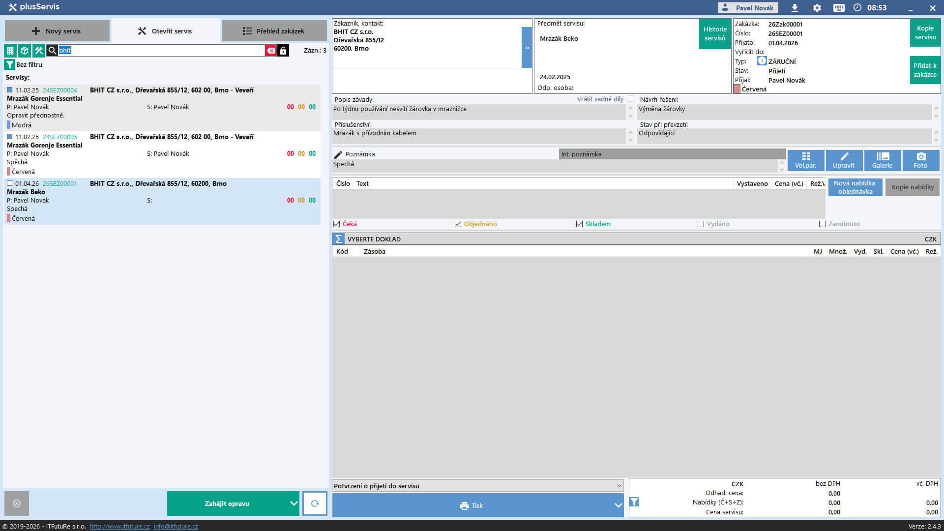 - upraveno doplňovaní telefonu a emailu do dokladů nabídky/objednávky, nově prioritně z kontaktu servisu (pokud je zadáno)