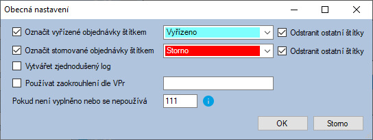 - Úprava - Uprava dotazu pro odstranění štítků u stornovaných nebo vyřízených objednávkách (Ostatní nastavení)